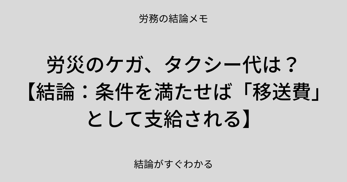 👉 労災によるケガの通院・移送で使ったタクシー代は、一定の条件を満たせば「移送費」として労災保険から支給されます。
