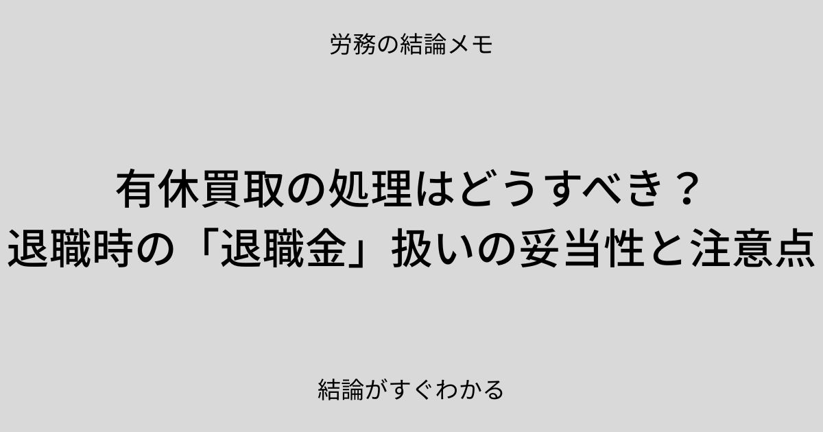 結論:退職時に残った有休の買い取りは、性質上「退職金」として扱うのが適当