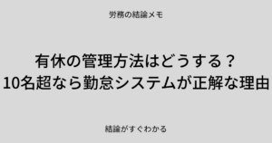 中小企業の社長、人事・総務担当者の皆さま、お疲れ様です。 「有休の管理、そろそろエクセルじゃ限界かも……」「義務化された年5日の消化、誰がどれくらい残ってるか把…