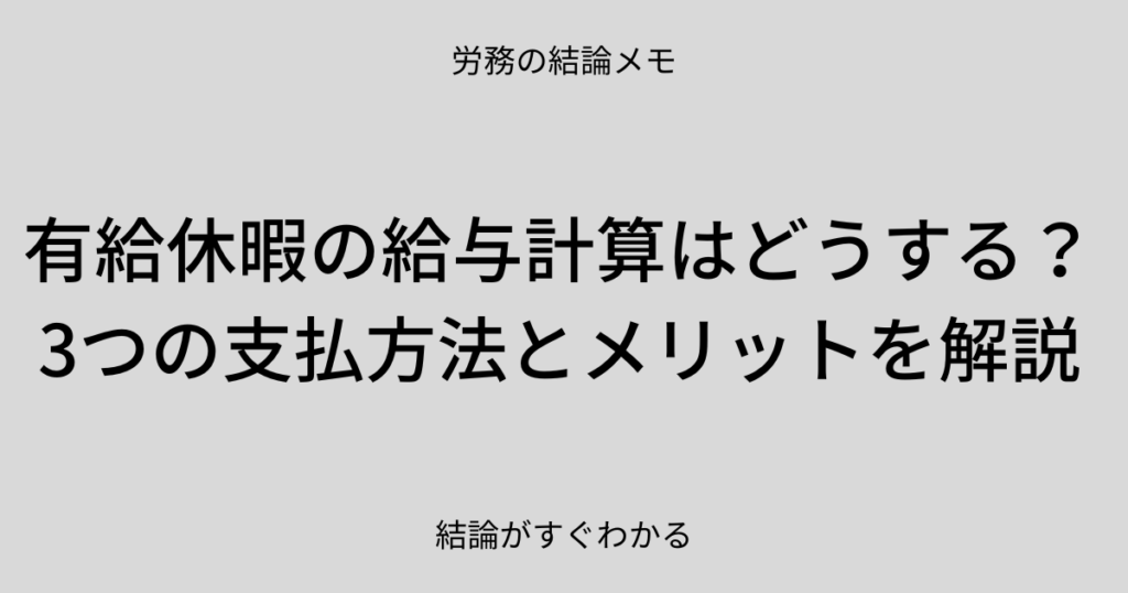 有休を取った日の給料、「なんとなく通常どおり払っている」そんな会社も多いのではないでしょうか。 実は、有休の給与計算には法律で認められた3つの方法があり、計算方法を間違えるとトラブルにつながることもあります。 この記事では、有休の給与計算の... -